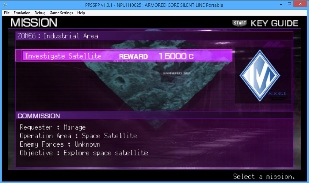 (12-06-2015 07:43 AM)Leo22 Wrote: Title: Armored Core Silent Line Leo22 That problem also occur to me, because of that mission, I stuck, please GM of PPSSPP, please fix this glitch or something in order to play it 100% [quote='LunaMoo' pid='111363' dateline='1444365459'] I made more portable solution that should work with official versions: Code: _S NPUH-10025It works for sattelite investigation, thanks |