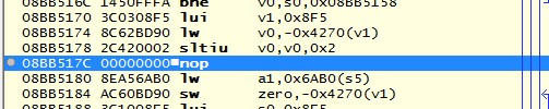 v1 register get's value 1 and 0 there when I set a breakpoint on that branch and as result skips every second frame, so since this branch actually goes back, let's just nop it.