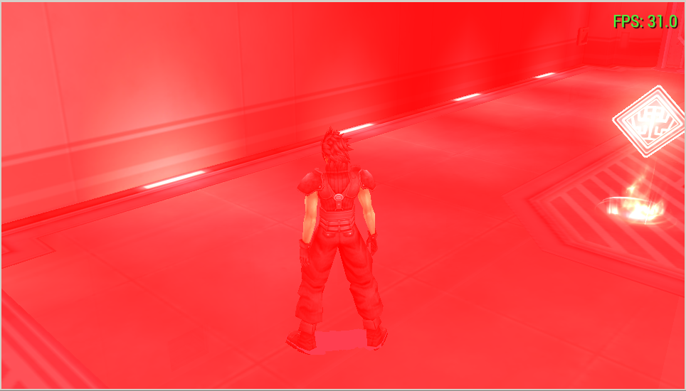 Hi, I'm currently playing Crisis Core and I'm at the point where Zack gets promoted to 1st class. I seem to be running into a problem here. At this portion of the story there seems to be an intruder entering the complex and the sirens go off. However, my problem is that in this portion of the game, everything is really bright red and I was trying to use different shader effects to see if I can make the red less "out there."
