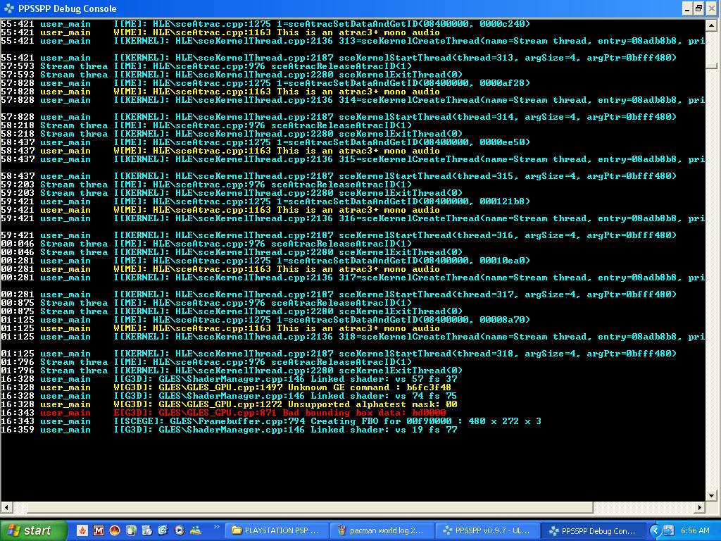 Format : CSO Version : v0.6-903-g1b1252b Game ID : ULES00260 OS : Win Compatability : Ingame Notes : Missing movies-crashing after a while when goes ingame.with fast memory on,emulator freezes,without i got this in debug tested on android-emulator freezes after pacman logo |