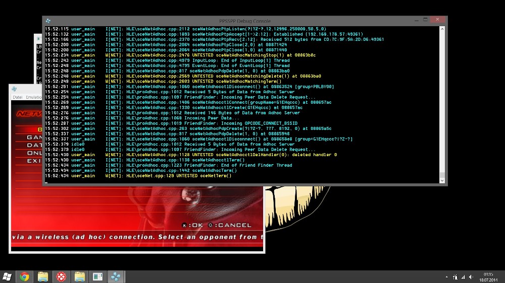 Quote:That cool, man! Connection was through hamachi?Tested via LAN, Hamachi, Tunngle and Evolve -> All worked ![]() Quote:And can you test on all DBZ ?DBZ Shin Budokai 1 - Cant see each other DBZ Shin Budokai 2 Another Road - Cant see each other DBZ Tenkaichi Tag Team - Works Quote:Naruto ultimate ninja heroes 1 player create a game 1/4 players other player see the room with 1/8 players sometimes it can join sometimes only disconnect xDi didnt have any problems with that game I dont know if this helps but here are some screenshots of logs of not working games: I used this build for testing Crash Tag Team Racing DBZ Shin Budokai 2 Full Metal Alchemist Brotherhood Kingdom Hearts Birth by Sleep Lord of Arcana Marvel Ultimate Alliance Naruto Ultimate Ninja Hero 3 Ratchet and Clank Size Matters Resistance Retribution Soul Calibur Broken Destiny Tekken 5 DR Join the EVOLVE PPSSPP Ad-Hoc Multiplayer Party ! My Evolve ID: Crashday | Group ID: PPSSPP Ad-Hoc Multiplayer | If you want me to test a Game for AdHoc Multiplayer or need help with it feel free to message me |