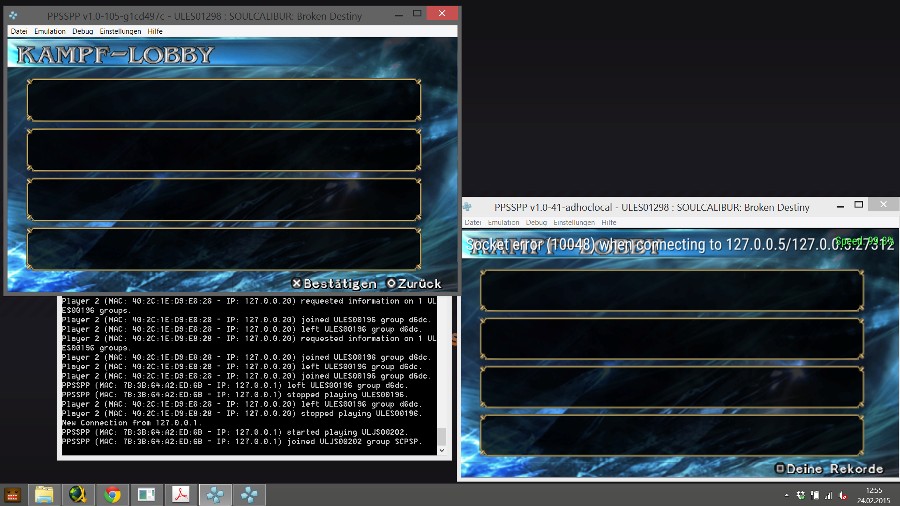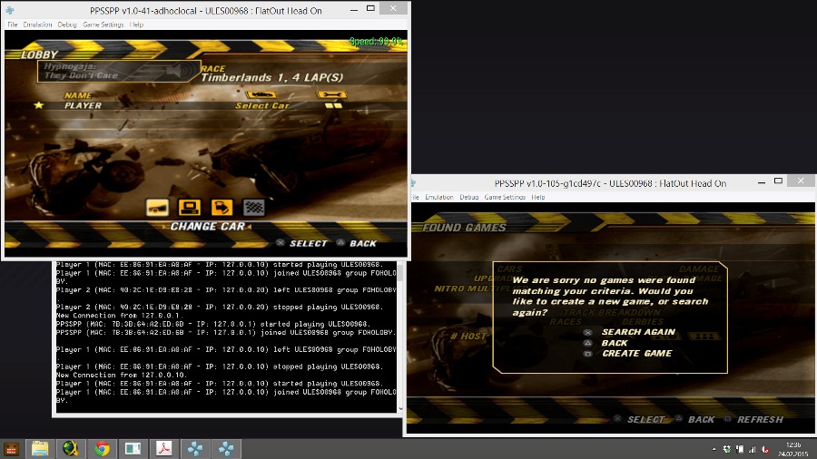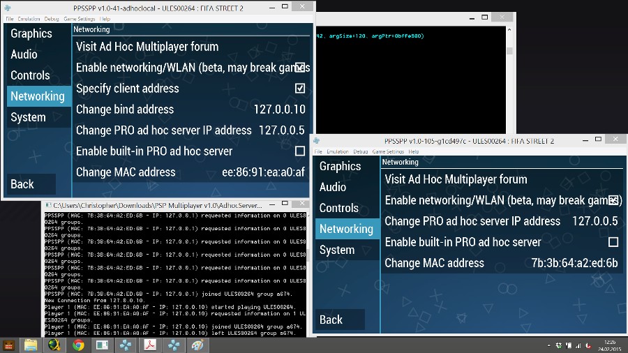 i currently dont have the hdd with the 200+ games but i got some saved on my usb drive so lets get started. today i tested a few games with adhoch local (1 pc multiplayer) versions i used were: ppsspp-v1.0-41-adhoclocal and ppsspp-v1.0-105-NON Local (needed for some games) THIS LIST IS FOR LOCAL HOST (1PC) MULTIPLAYER ONLY SOME GAMES WORK WITH ADHOC MP (2PCs)-> 1st Page of this Thread my network settings Tekken 6 (local+local) Crash Tag Team Racing (nonlocal as host + local) Fifa Street 2 (nonlocal as host + local) Flat Out Head on (not working, at least i didnt get it to work) Full Metal Alchemist Brotherhood (nonlocal as host + local) Marvel Nemesis (not working) Need for Speed Most Wanted (nonlocal as host + local) Soul Calibur (not working can find host) Tekken 5 (not working can find host) Join the EVOLVE PPSSPP Ad-Hoc Multiplayer Party ! My Evolve ID: Crashday | Group ID: PPSSPP Ad-Hoc Multiplayer | If you want me to test a Game for AdHoc Multiplayer or need help with it feel free to message me |