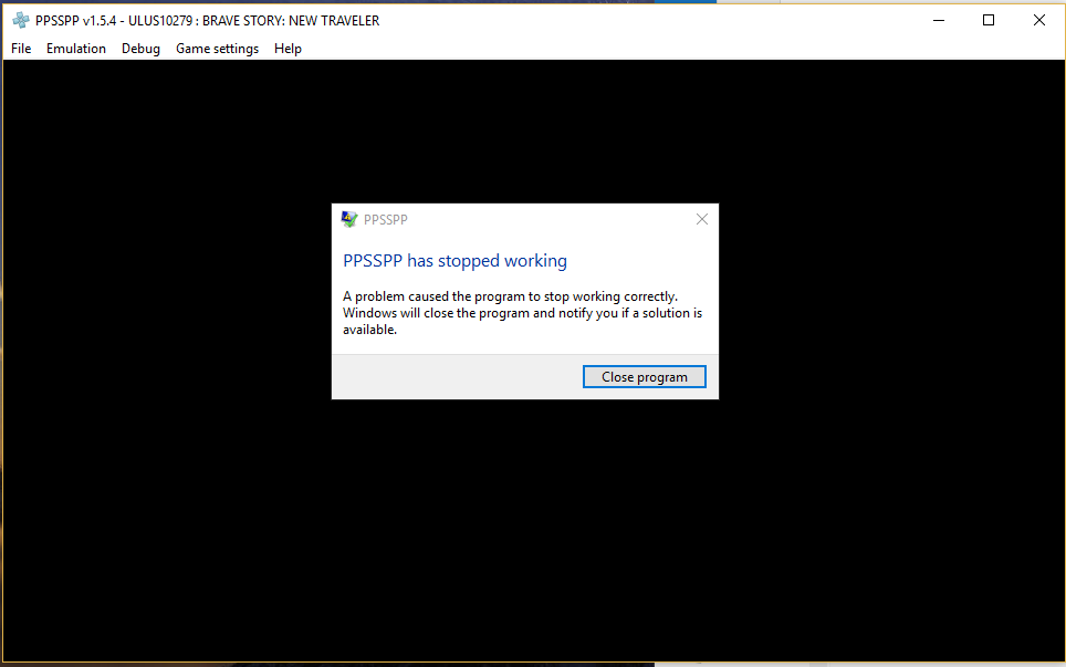 PPSSPP crashes as soon as i try to start Brave Story. The moment i click "play" PPSSPP stops responding and closes. I can play any other game no problem but this only affects Brave Story, I've tried downloading different Brave Story from other websites but the same problem still persists. Pls help