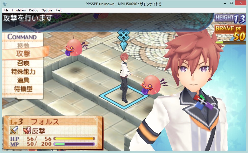 Genre : Strategy RPG Region : JP Format : ISO Version : Tested on 0.7.6-593-9344fa71 and oioitff's 5-9 build Game ID : NPJH50696 OS : Windows (8, if that makes any difference) Compatibility : Playable Notes : No music, movies and voice acting in the main build. Needs to use oioitff's build to have those, and they'll work fine though in-game BGM volume control doesn't work. Flickering when changing onscreen characters. Odd transparency/fog effects when the game uses them in conversations. 3D models of characters in menus show wireframes (can be alleviated with SSAA). Some issues with dialogues using wrong text after leaving the window to itself for a few minutes, although it also rights itself after a second or two so I'm not sure if it should be called an issue. Otherwise, haven't ran into problems so far. Update : Upon mucking around some more, it seems that the crash with Summon 3 savedata is a bit odd. If I start the game on a memory card with Summon Night 3 savedata on it, the game crashes when loading the save media. If I load an ongoing Summon Night 5 game while a Summon Night 3 savedata is on the memory card, however, it works just fine. Also, may I note that it looks utterly gorgeous compared to the actual PSP? |