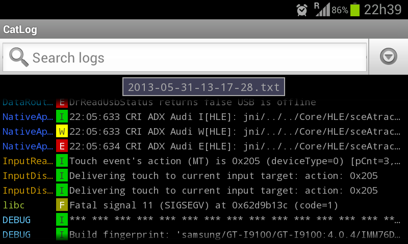 I don't understand about log, but I was reading a that I did while playing PES 2013 and I found who I think be a error in libc: