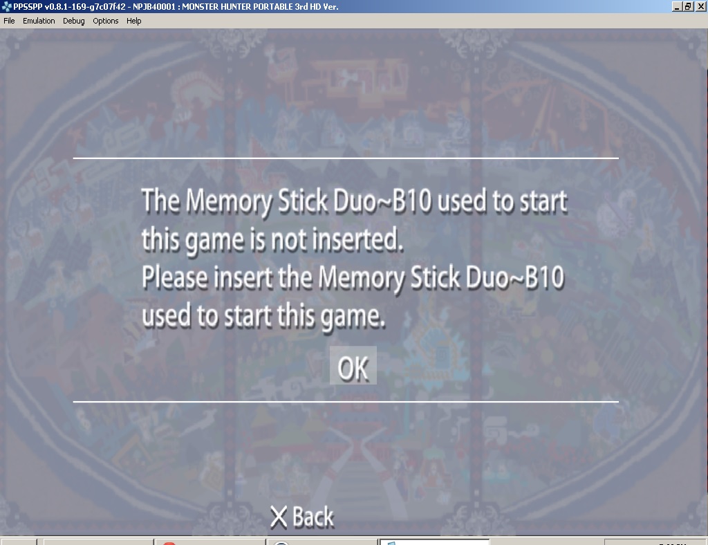 I've attached screenshots of whats going on. For some reason, after I beat the event quest to kill Zinogre, on the screen afterwards showing rewards and whatnot, when it loads to go back to the village the video goes haywire and never loads me back into town. The sad thing about this is, this is a save state so this is the only data I have for my file because for some reason it stopped letting me save the data as normal telling me "The memory card Duo~B10 used to start the game is not inserted. Please insert the Memory stick Duo~B10 used to start the game.", so I was forced to just start save stating my data. TLDR: My game will not load and I need somebody to help me get the memory card working or possibly give me save data preferably around or after when you kill Zinogre. |