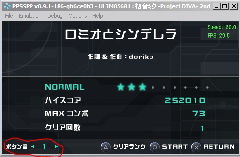 (08-26-2013 01:38 PM)Deathmaw Wrote:(08-26-2013 10:43 AM)solarmystic Wrote:(08-26-2013 10:37 AM)Deathmaw Wrote: This is working fine with the English patch as of latest github version on my Galaxy S4. I can't beat any levels but that is more because I suck. In the screen right before you start a song, there's an option that you can change that will either alter the sound of the noise it makes when you hit the notes, or completely turn it off. Just hit the left or right dpad buttons until it changes the number to off. Here it is, circled in red in a screenshot:- PPSSPP Modern Testbed:- Intel Core i5 4690K @ 4.0 GHz NVIDIA Geforce GTX 760 2GB GDDR5 VRAM @ 1138/6500 Mhz 16 GB DDR3 RAM @ 1600 MHz Windows 7 x64 SP1 PPSSPP Ancient Testing Rig:- Intel Core 2 Duo T9550 @ 2.8GHz ATI Mobility Radeon 4670 1GB GDDR3 VRAM @ 843/882 MHz 8 GB DDR3 RAM @ 1066 MHz Windows 7 x64 SP1 |