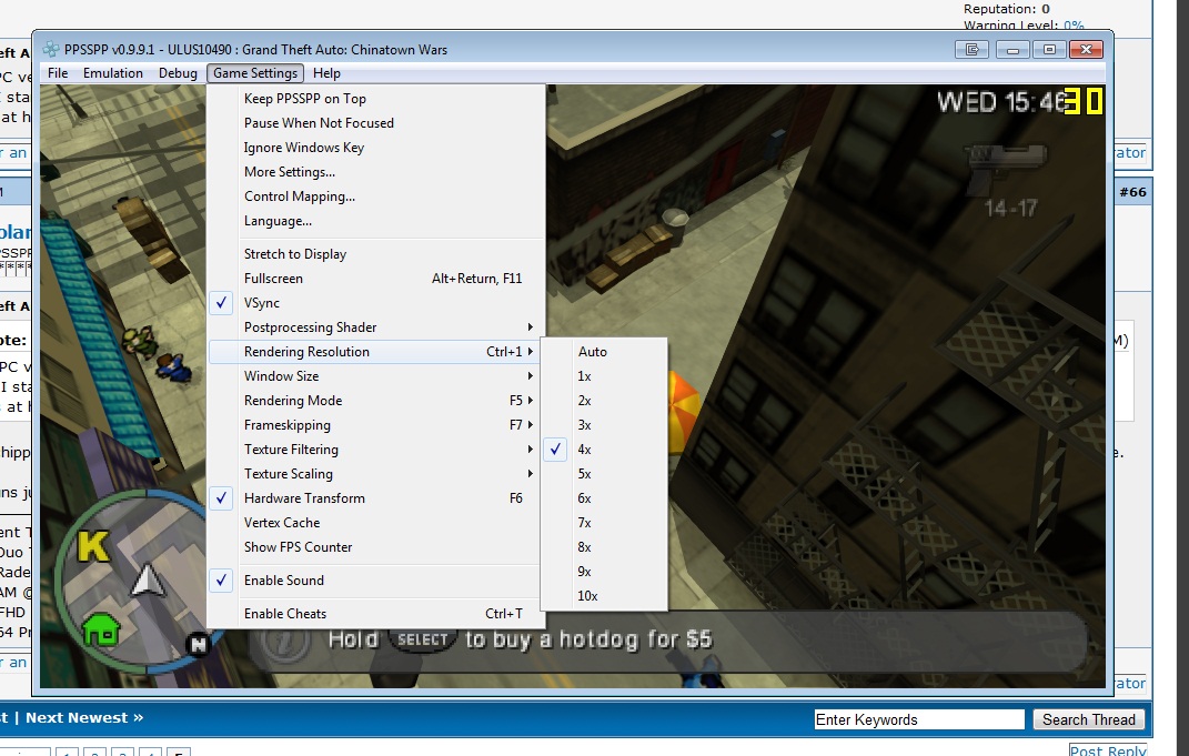 (08-24-2014 03:28 PM)solarmystic Wrote:(08-24-2014 01:05 PM)-Dant- Wrote: I'm using a PC version of PPSSPP and when I tried to emulate the game it had problems with flickering HUD, menus and shadows. I tried older emu versions to no avail. Then I started playing with the settings and found the culprit: Vertex cache. Turning it off solved all graphical issues. Hope it helps someone. Oh, and the game works at higher than 2x resolutions (checked 3x and 4x). Yes, here's the screenshot. At 5x and 6x HUD and menus don't work, but at 4x and lower they do, at least on my PC. |