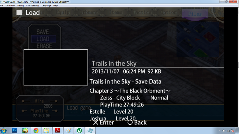 Hi! I'm having problems with the save option of Trails in the Sky. My problem is that I can't move any arrow key in the save option(see pictures). i.e., I can't move from panel to panel (so that I can have multiple saved data) nor choose to overwrite an existing saved data (since the default option in the question "Do you want to overwrite" is "NO")
