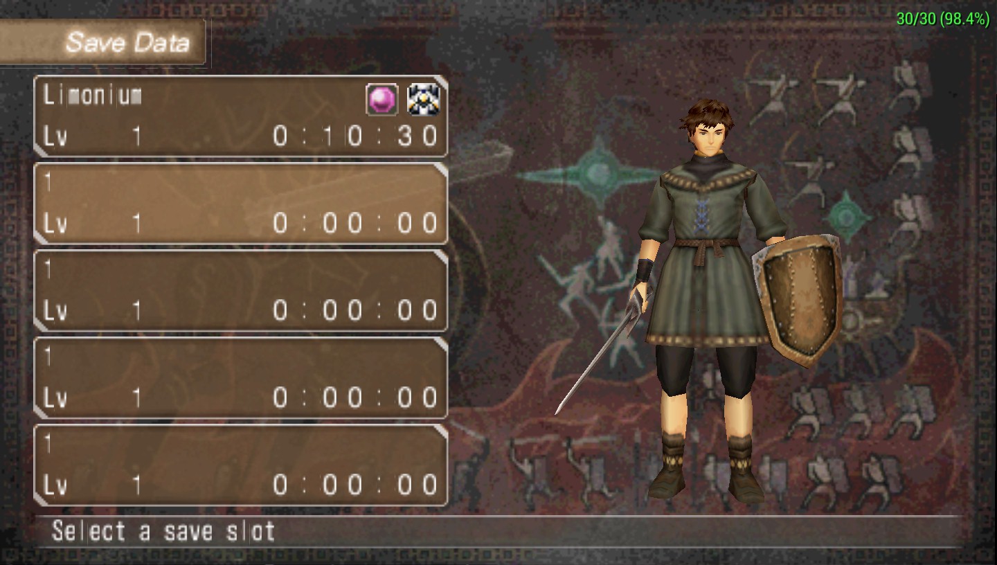 I find a stupid way to overcome the save problem. No need to use save state any more. 1:Create a new character. 2:After creating a new character, you should get the "Error Code:80110327". Just save at the first spot. 3:Find the SCENAR0.BIN in the SAVEDATA file. 4:Copy SCENAR0.BIN and paste it "four" times.(Important) 5:Rename the copies, SCENAR1.BIN, SCENAR2.BIN, SCENAR3.BIN and SCENAR4.BIN. 6:Reset the game and choose "Continue". 7:Just play. PS:You should see this in your SAVEDATA file. And then you will get this in the game's save menu. |
