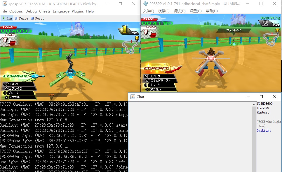 (08-28-2015 08:25 PM)nightmesh Wrote: Okay so I forgot about the local adhoc that someone build and I gave it a whorl and it works with kingdom hearts but even testing it with jpcsp didn't give me any different results then what we got. You were pretty right about just being able to pass D links and nothing else. Both Command Mode and Race Mode are working now, JPCSP emulator must be the host. VS Mode and Arena Mode still don't work even with JPCSP as host |