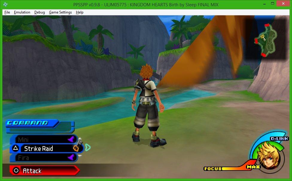 So a follow-up from my post several weeks back... I've determined that KH:BBS FM just doesn't like running on Haswell graphics. And it's all versions of PPSSPP, not just 0.9.9.