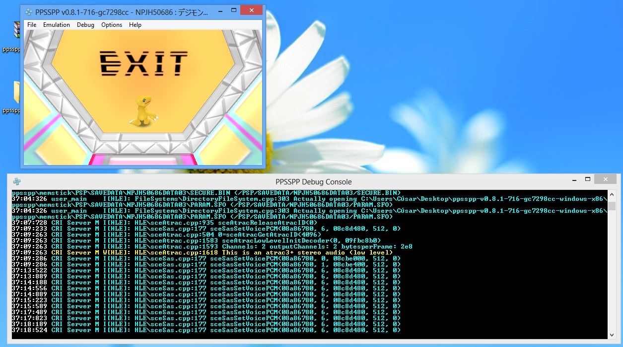 Update: savegame to test. The next "Exit" is the area with infermon, in ppsspp always gets stuck, (tested in v0.8.1-574-g3703599 default sets).