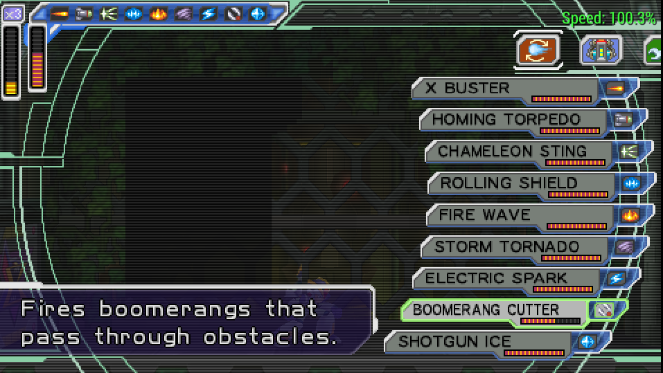 Sting Chameleon's cloaking ability, while rendering correctly, is still missing the wavy animation that accompanies it. This has the side effect of making the battle harder, as it is much more difficult to see where he is moving around while cloaked.