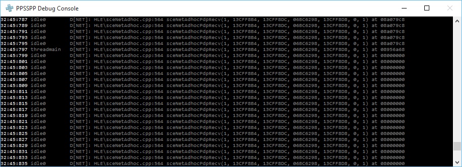Edit: It feels strange that sceNetAdhocPdpRecv is being called from PC 0x08000000 (repeatedly until it finally back to normal PC followed by host deleting a socket/closing a connection)