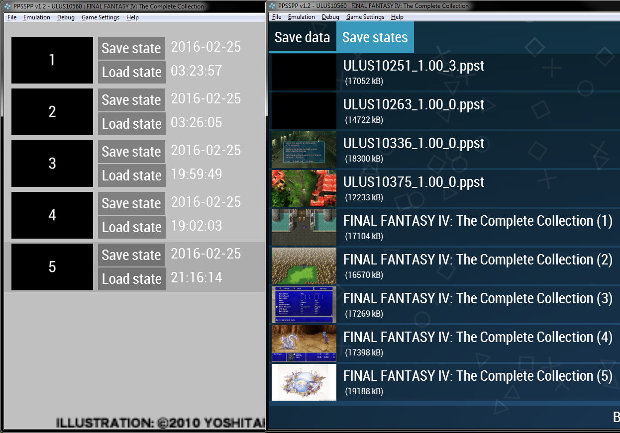 I noticed the save-state folder has screenshots. Said screenshots display within the savestate manager under tools, but not within the save-state loading portion of the emulator. I can't find out how to remedy this. It's a little detail, but it comes useful later on. Thanks for the help. |