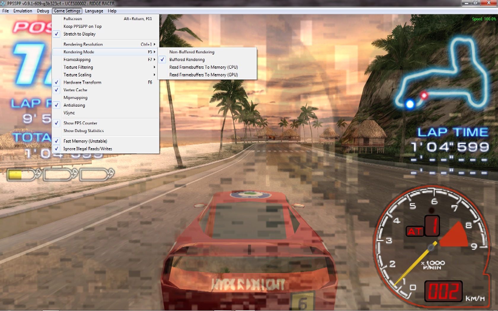 Hi guys - checked build.v.9.8.1145-ge657980 - the reflection issue is back with buffered rendering on - but when using nitrous screen doesnt go black anymore as shown in prev post - so what change was done in build 9.8.1088 fixed reflection issue with buffered render on during game ,and what change was done in this build fixed black screen when using nitrous.this also the same with ridge racer 2 (if you could combine the two builds - the game would run perfect lol)