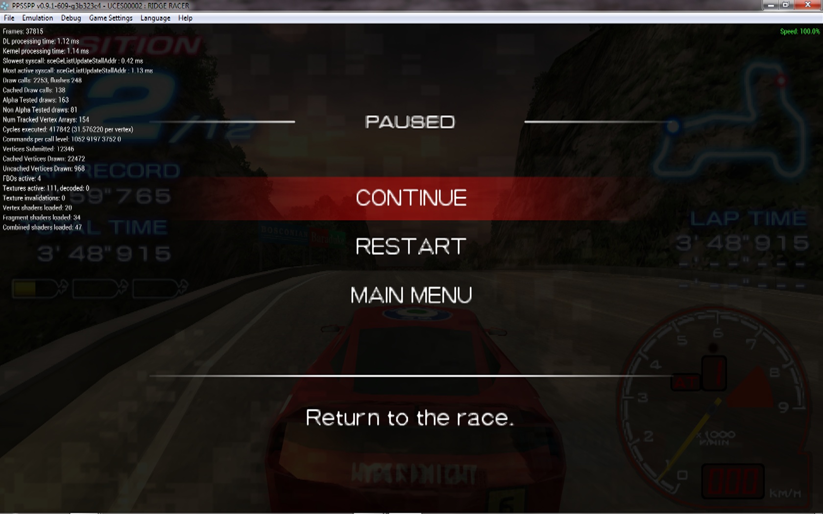 I had this little issue now since Ridge Racer became playable on PPSSPP (which was long ago). To me it looks like an oversized asset of the game layed on top of the screen. I might be wrong but it looks like the enviromental reflection on the car beeing displayed twice ? Here are some screens which show the problem, I also noticed that once I up the resolution, the problem dissapears (or gets so small I can't see it anymore, since the reflection on the car gets a higher resolution as well): 1x resolution: ![]() 2x resolution: ![]() 3x resolution: ![]() 4x resolution: ![]() 5x resolution: ![]() 6x resolution (can't see it anymore): ![]() 1x resolution - buffered rendering turned off: ![]() The last picture shows the game without buffered rendering. It disables the reflaction on the car. That's where my oversized / displayed twice reflection theory came from. The Android build isn't affected by this (as far as I can tell). Another funny thing is, that once I use the boost in the game, the artefact dissapears for that short moment and slowly fades back in, once the car speed settles back down to normal. I hope someone can make some sense out of it ![]() Thanks, iCEQB EDIT: Here is another screen, it seems to be the reflection of the front on the car: ![]() Another thing I moticed (unrelated to that problem) is that once the window is 2x in size, I sometimes (!) get this line on the start menu: ![]() If the window is 1x its size, the problem never appears (same on the Android build): ![]() Edit by vnctdj : You have to post in the game's thread, please do a search before creating a new thread... Given that these information you propose are interesting, I merged your thread in the game's thread. |