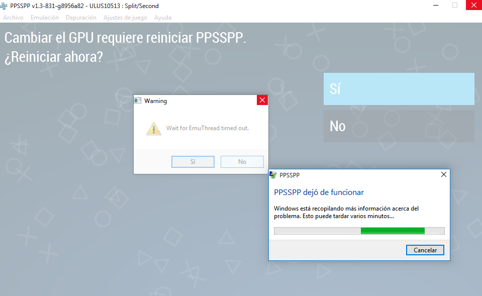 warning too many samples to read this shouldn t happen It also appears when a kinematics It also appears when you crashed the car or there are explosions The failure causes the hang up the game and emulator I have tested the game on other computers with Windows 7 and 10 it is the same Please fix this error is frustrating me MY PC windows 7 64bits ultimatem 4gb ram processor I5 AMD radeon 6570 I have time trying many versions and I still get the same error in the same game (03-14-2017 03:28 AM)josebraund Wrote: When I am playing split second , I pause the warning message appears Error in full screen makes hang the emulator |