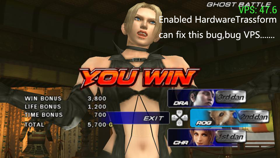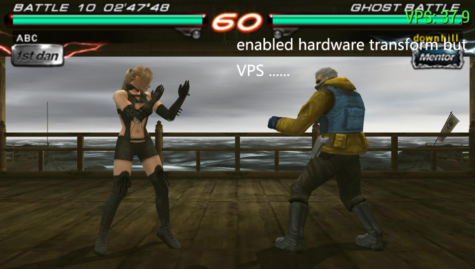 For me Tekken 6 works 60 VSP on PC with default settings.. That means i didn't turned off HW Transform, and enabled frameskip.. HW transform is ON, frameskip off... Also enabled settings are: Buffered Rendering, Vertex Cache, Show FPS...