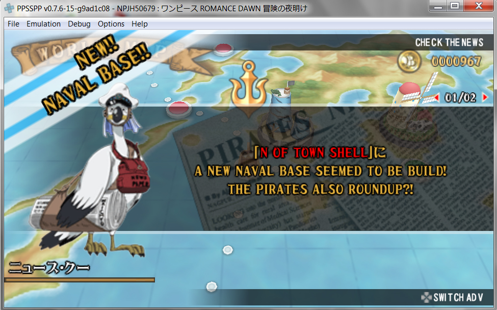 So I just downloaded PPSSPP and One Piece: Romance Dawn, everything was just okay but after the battle with Morgan... I'm stuck.. I don't know if it's with PPSSPP or the game itself..