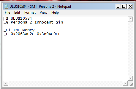 Can't get the cwcheat for persona 2 innocent sin to work