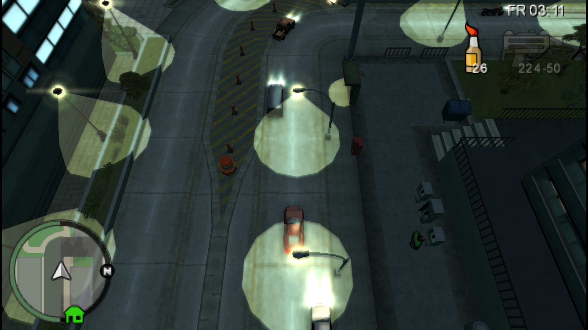 Did you try to turn off Anti-Aliasing? This brought all hud-elements back for me (in fullscreen of course). And i found another small graphical issue compared to psp: The light-cones of the streetlights are only slighty visible on the psp, they need a little bit more transparency on PPSSPP. |