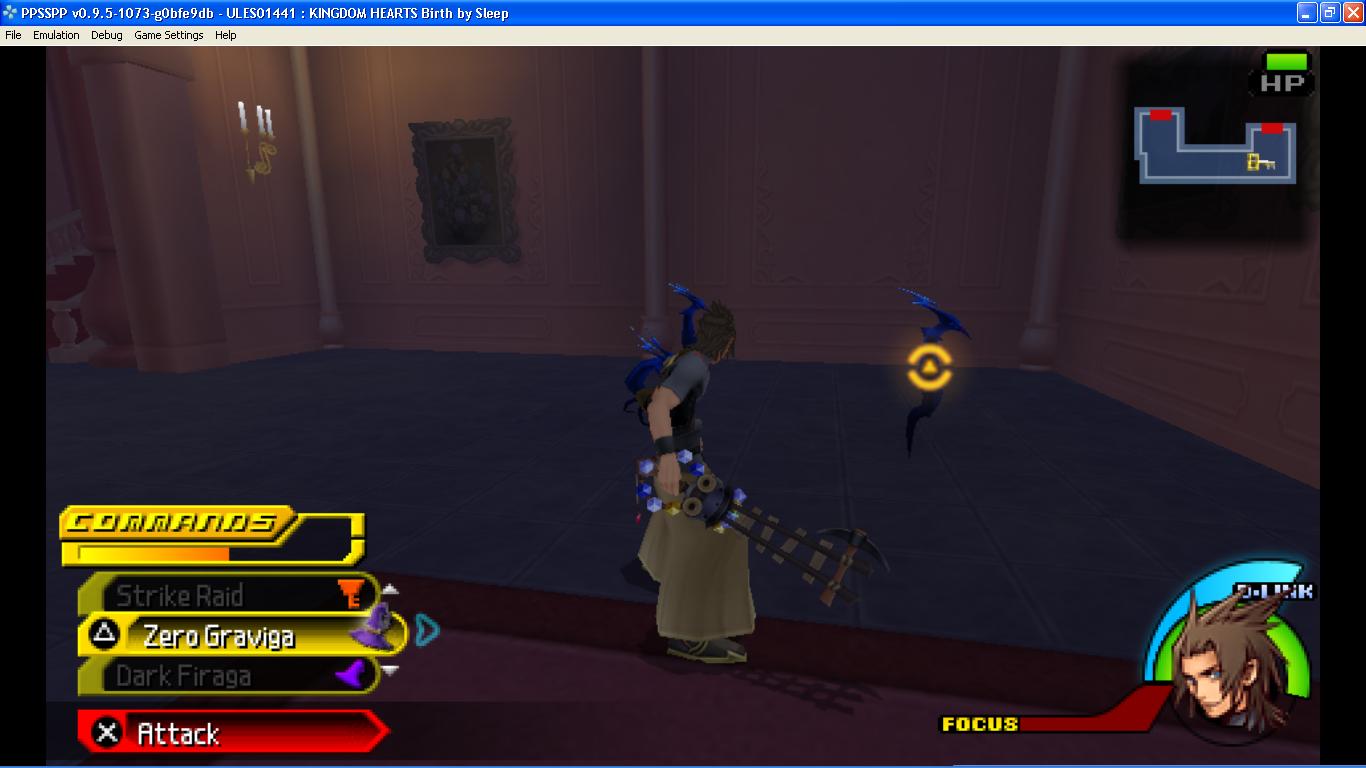 Region : europe Format : iso os : windows Game ID :ules01441 Compatability : playable previous the problem, I've finished the Ventus's story and everything went fine. when I start the terrals story, there are some problems that I face. The first problem is when the mission terra escorting cinderella to the ballroom, the game suddenly stopped on midway progress mission and the screen went black. second when I repeat a few times and successfully get to the cutscene, then, I got in trouble in animation effects and sfx sound , n the next problem is when terra passing a new area, the area should be written "?????" but it's written on japanese word like the pict below when terra exploring the new area n he meet the enemy currently using ppsspp V0.9.5-1073-g0bfe9db, my pc specs my pc version: windows 7 ultimate my pc specs : intel(R) core(TM)2 duo cpu E7500 @2,93GHz 2,93GHz, 2,00 GB of RAM sorry for bad english, i'm indonesian. |