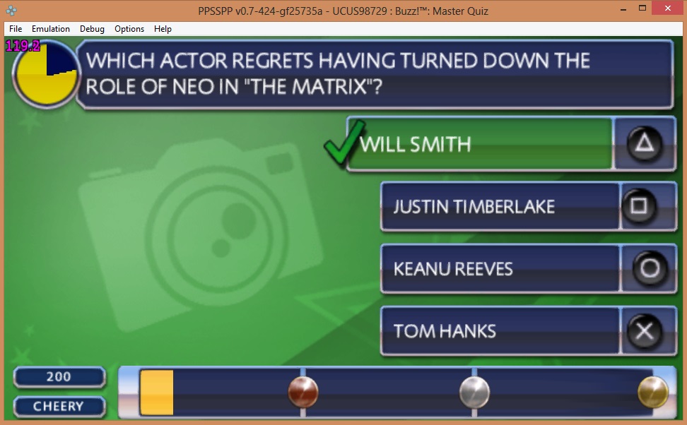 I'm using the PPSSPP 1.2 version(Win 8.1), but when playing the Buzz Quiz, I'm unable to see the videos in some questions.