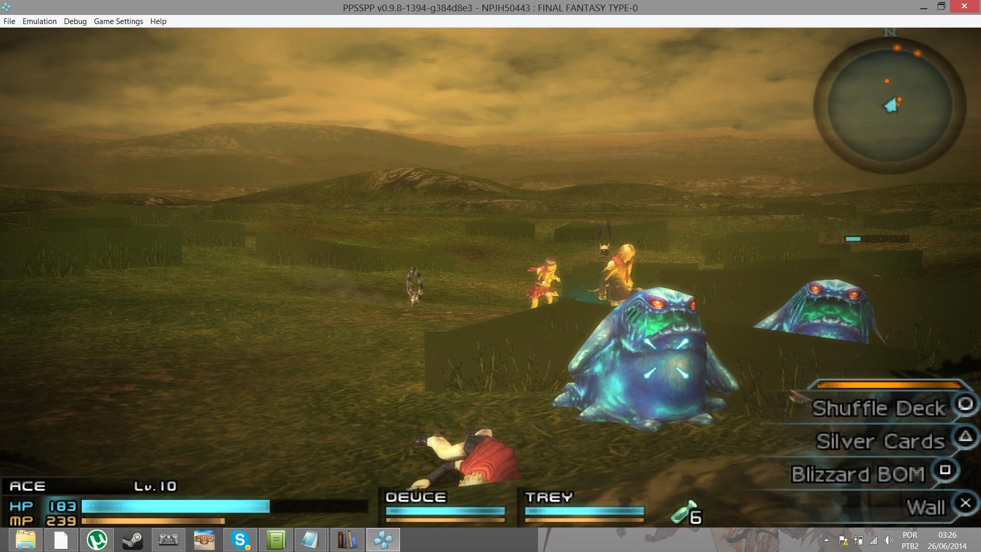Aside from some frame rate hiccups on drawing multiple phantasma at once and on using the Relic (where you save, equip, etc), Type 00 works great for my Galaxy S3, I cannot say with certainty if this will work with other devices but feel free to try my options (on the latest available build on Orphis). (Note: Other options should be on default, if you cant remember what it was then go to System and Restore PPSSP settings to default) Non-Buffered Rendering Simulate block transfer (Off) Lazy Texture (On) Retain changed textures (On) Spline/Bezier curves quality (Low) Texture Cord speedhack (Turn ON) Fast Memory (Turn ON) Change emulated PSP's CPU clock to 75 [if it is any less than 75 there are graphical glitches on text on mission info & others] PSP Model (PSP-2000/3000) ------------------------------------- If you're still desperate for speed then same options as above but: Fast Memory (Turn OFF) Multithreaded (Turn ON) Multithreaded makes the game player even more smoother but there's a catch, it displays the characters (usually when they re spawn/start a battle) as an unsightly transparent glow that ruins the immersion in playing. ------------------------------------- Or you can even try turning on the FRAMESKIPPING to 1 (personally I prefer not to resort to this because the game appears to lag but it GREATLY increases speed) |