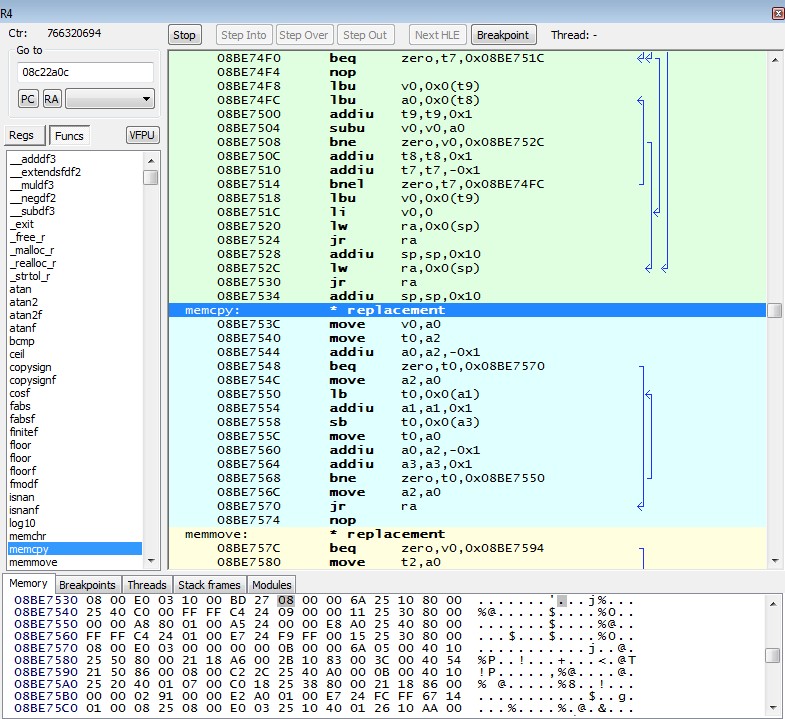 And i haven't been able to make GTA:VCS to works either but i think the issue is with the unimplemented sceKernel something which is beyond my knowledgeGames that getting too many Invalid address in the log are also difficult to dealt with, sometimes they just hung/frozen (probably related to unimplemented HLE stuff also) @LunaMoo: memcpy was always treated like Fast Memory enabled (doesn't check address validity) and when the game is using invalid address it could crashed ppsspp, i think memmove also have the same issue but i haven't check it out. And yes, games that use adhocMatching seems to try to leave the group, but they usually joined a different group afterward, i even saw a game (forgot which game) Terminating Matching when multiplayer game started, but i can still play the game without issue (as long all players already inside the game world) Btw, there is something wrong with how the game initialize/terminating network in that log O.o A normal network sequence is NetInit->NetAdhocInit->NetAdhocctlInit->NetAdhocMatchingInit->(some adhoc functions)->NetAdhocMatchingTerm->NetAdhocctlTerm->NetAdhocTerm->NetTerm But in that log even after NetTerm the game still tried to use Matching function O.o (which should be failed because the socket can't be used anymore) @sum2012: did Metal Slug XX still crashed ppsspp? i didn't play it long enough to see what happen after a long multiplayer game, according to GamerzHell9137 it still crashed O.o i wonder if he have Fast Memory enabled Btw, there is delay time when both player joined and multiplayer game started, it didn't start as soon as possible (like having a few seconds delay) when i "ACCEPT" it (before moving on to the character selection), is this normal? (ie. also happened on real PSP?), i also noticed the same delay issue with Full Auto 2 (making me feels it failed to start the game for a moment) PPSSPP Multiplayer Guide: https://github.com/hrydgard/ppsspp/wiki/How-to-play-multiplayer-games-with-PPSSPP |