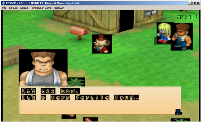 Genre : Life simulation/Role-playing video game Region : US Format : ISO Version : PPSSPP v1.0.1 x86 OS : Windows 7 Ultimate 32 bit Compatibility : Playable Notes : Black area for moving objects |