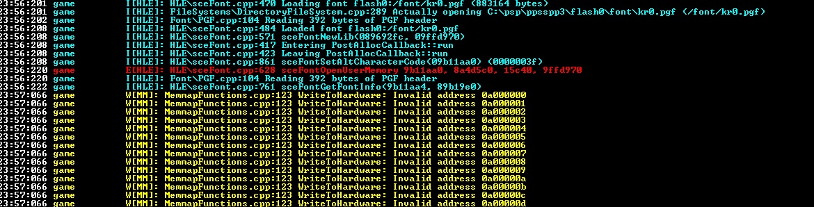 54:21:449 game         I[HLE]: HLE\sceKernelModule.cpp:813 280=sceKernelLoadModule(name=disc0:/PSP_GAME/USRDIR/Modules/libfont.prx,flag=00000000,(...))
