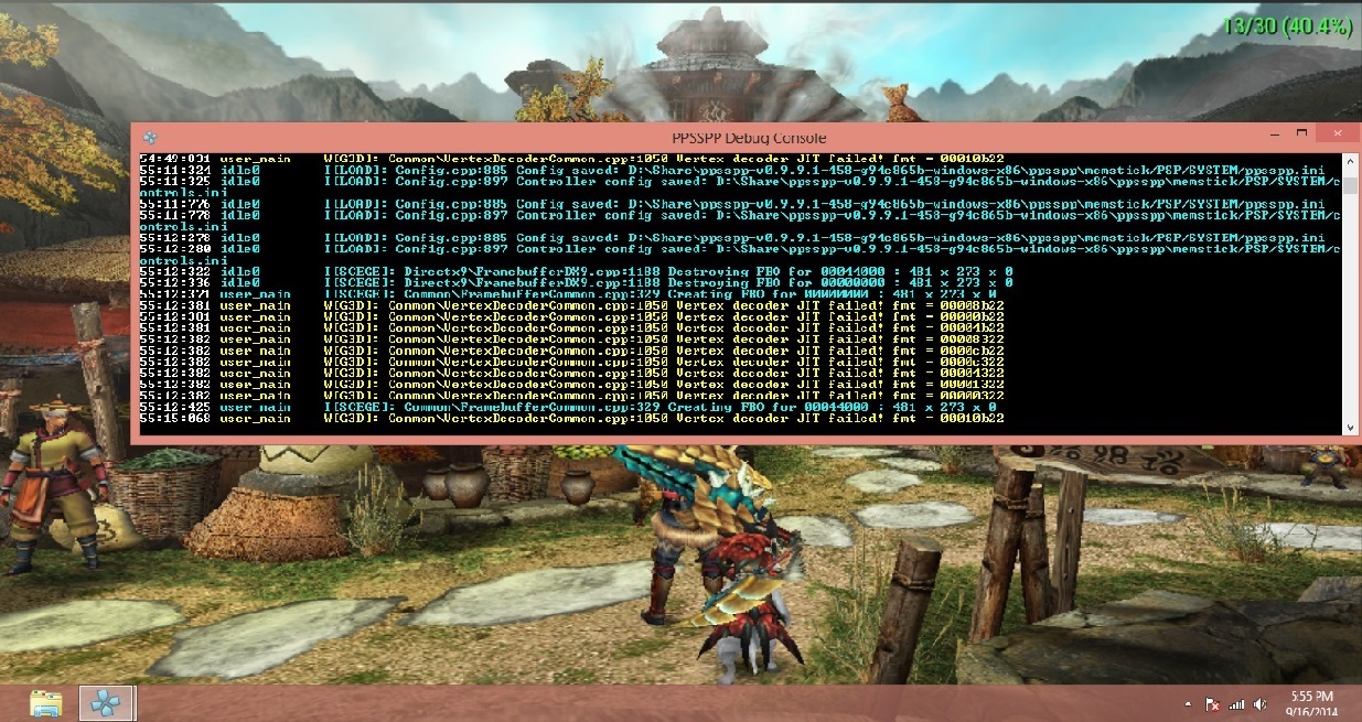 latest revision v0.9.9.1-458-g94c865b MHFU Mhp3rd and this one another test with system info (intel old vga) http://forums.ppsspp.org/showthread.php?...9#pid94269 -edit- random slowdown , and the log is flooded with this one both mhfu and mhp3rd Experimenting with adhoc over internet system through Amultios custom ppsspp fork, find me in game Monster Hunter Freedom : Lucis Monster Hunter Freedom Unite : Lucis Monster Hunter Portable 3rd: Lucis |