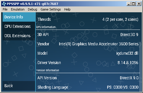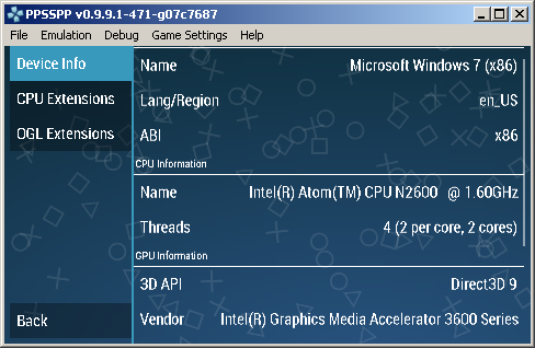 * Open Memstick/PSP/SYSTEM/ppsspp.ini * Under [Graphics], change the setting GPUBackend to 1. On startup, PPSSPP should now show "Direct3D9" at the bottom instead of OpenGL. The Direct3D backend is still very immature but some games are now quite playable, it's pretty similar to how the OpenGL backend worked a year ago. It's not time to file issue reports yet but it would be interesting to hear how well it runs on various low end machines. Later, we will also add a D3D11 backend which will allow porting to Windows Phone. However it's hard to say if we are going to get good enough performance without a JIT, as JITs are still not allowed on Windows Phone. |