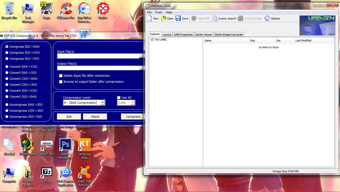 (10-11-2014 06:46 AM)Livy. Wrote:(10-11-2014 06:28 AM)cybercjt Wrote: yep PSP ISO Compresser v1.4 works perfectly Dunno about the main websites but I mainly use this programs ![]() Especially UMDGen cuz you can also mod the file contents of the ISO/CSO (for patching, updating or some mods) ![]() So far didn't encounter any errors or "put my data integrity at risk" those download links are legit as it is