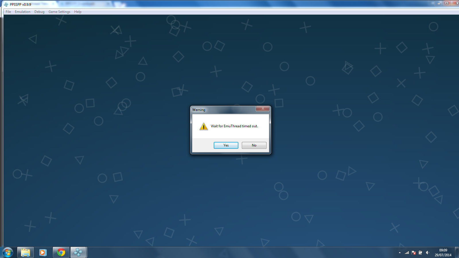 Every time I try to load PPSSPP it crashes soon after the text is displayed. The windows freezes and then eventually i get the error message "Wait for Emuthread Timed out". Could someone please help me get to the bottom of this.