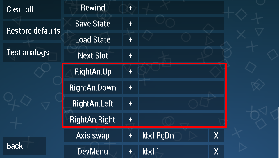 • Left click will hit the key "i" (can bind this to triangle in PPSSPP)