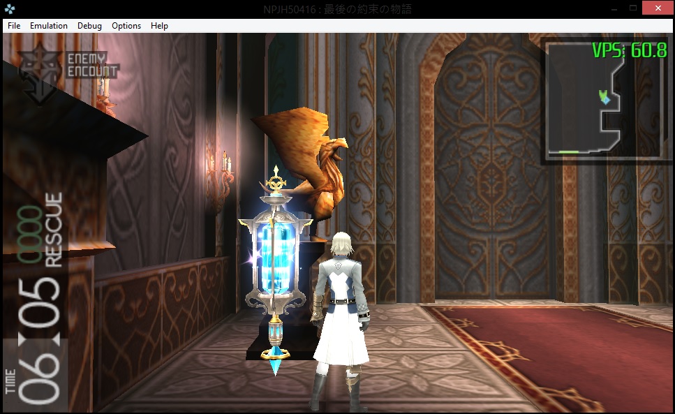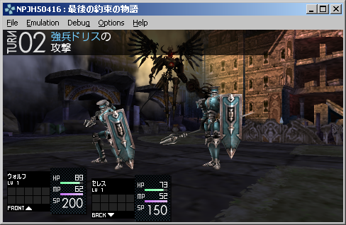 Tested on: v0.6-1073-gd10bdd6 Genre: RPG Region: JP Format: ISO Game ID: NPJH-50416 OS: Windows 7 x64 Comparability: Ingame Notes: Crashes the emulator a few minutes into the game. It looks like a call to something called "sceMpeg" may be the cause of the crash. |