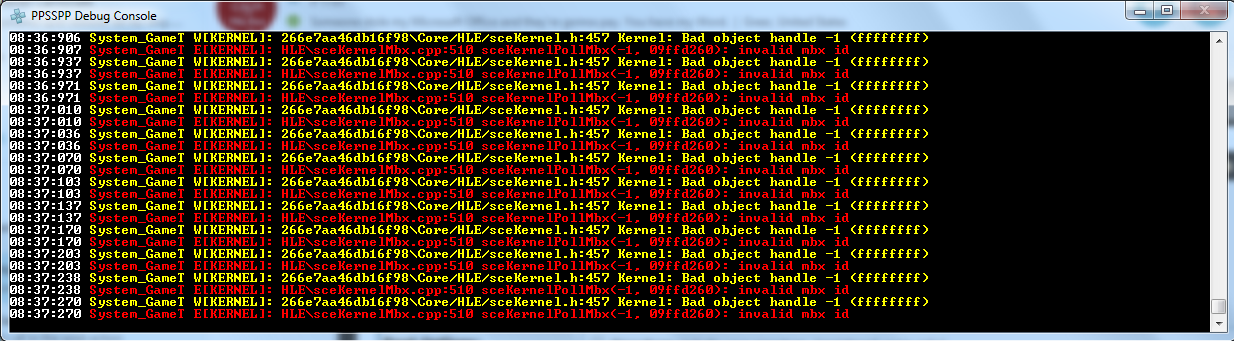 so me and my friend are very new to PPSSPP however we love the easy interface and have both set up the same version of Force Unleashed PSP. We turned on all the right settings, and as you can see on the attached pic we are both connected to the host (me). However, we also get these errors in the log console (other pic), and I think it's to do with the game's support of PPSSPP's Ad-Hoc system.. We're going to try Battlefront - Renegade Squadron instead soon but it would be awesome if this issue could be fixed! Thanks a lot, Darkness EDIT: Renegade Squadron works!! That confirms nothing's wrong with the emulator, and it's just the game that needs sorting out. Again, any help would be greatly appreciated!
