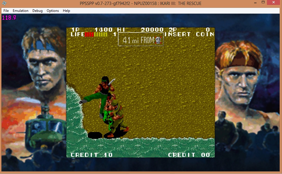 Region : US Format : CSO Version : v0.7-273-gf7942f2 Game ID : NPUZ00158 OS : Win Compatibility : Perfect Notes : All Ikari warriors are playable |