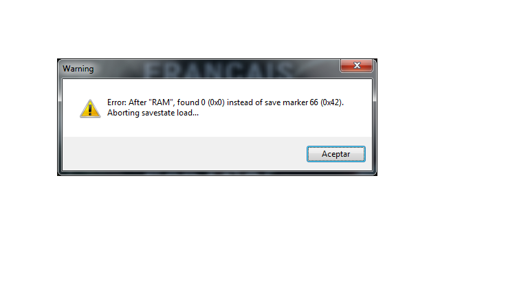 Como dice el título, ocurre este error al cargar solo un estado en particular. Jugué normal todo el día, cerré, apagué y todo, no sé qué pasó, he visto posibles soluciones y algunas no las entiendo, sin embargo espero puedan ayudarme. Empecé a guardar en estados debido a que el guardado normal no sé por qué no funcionó más, supuestamente ocurre una desincronización que es error del emulador. Adjunto imagen, desde ya gracias. |