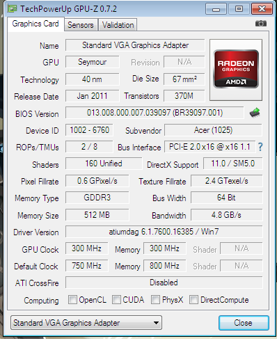 From the GPUz page, it seems like your card is actually a AMD Radeon HD 6470/90M