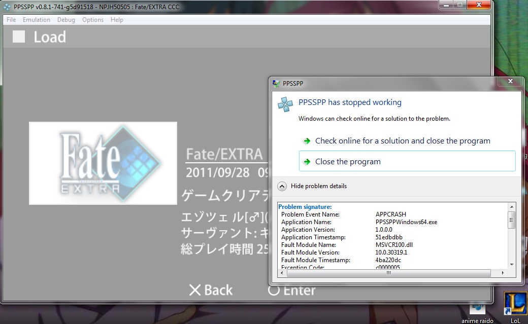 I've tried to load my savedata of Fate/extra to Fate/extra CCC to unlock a costume but it always crashes T_T