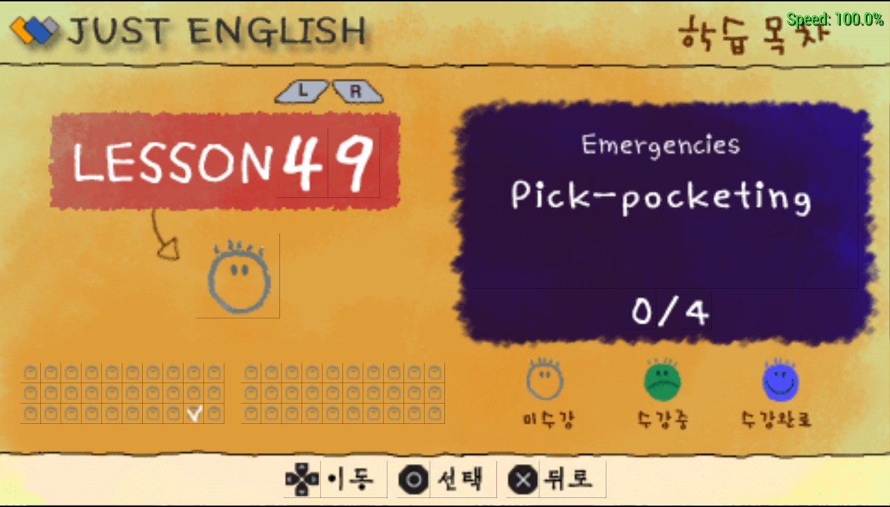 Disc ID: ULKS46090 Genre: Education Region: KOR Format: ISO Version: PPSSPP 0.9.1-331 x64 OS: Windows 7 x64 Compatibility: Playable Notes: Movies, GFX, BGM, sound, speech, everything O.K. Log file x64 : JustEnglish_X64.zip (Size: 85.96 KB / Downloads: 827)